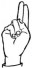 На ћирилици написано РАДОВАН СКОКИЋ састоји се из 13 слова [?]. Исписано ћириличном једноручном азбуком за глувонеме: